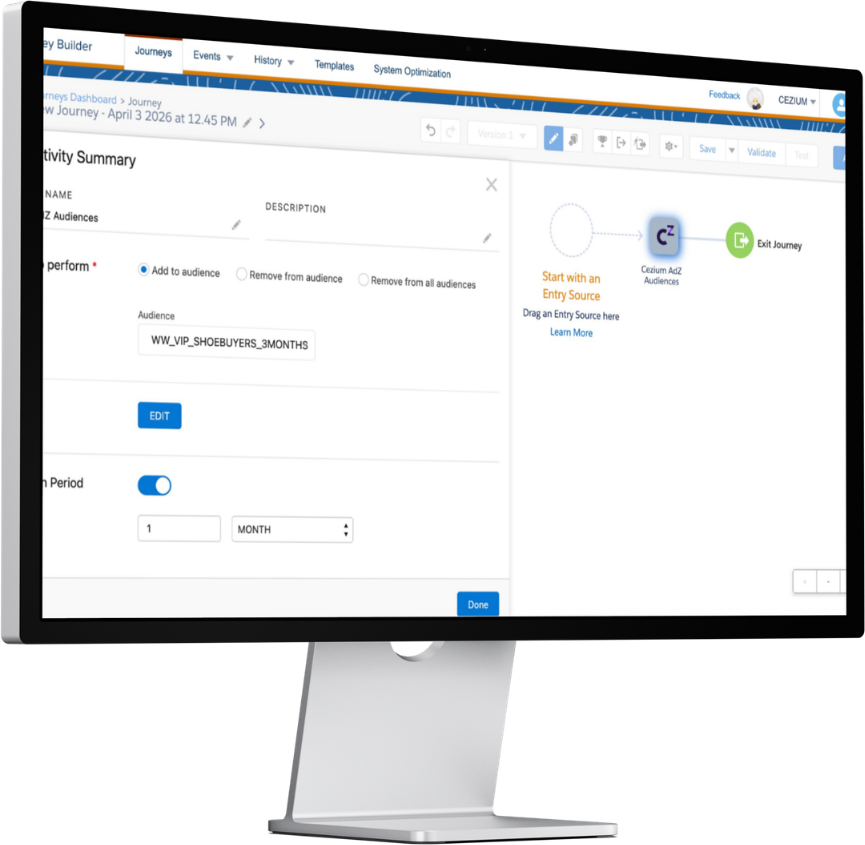 Works alongside existing Journeys — Cezium Ads reads your active Journey audiences. No need to duplicate or reconfigure your current automation setup.